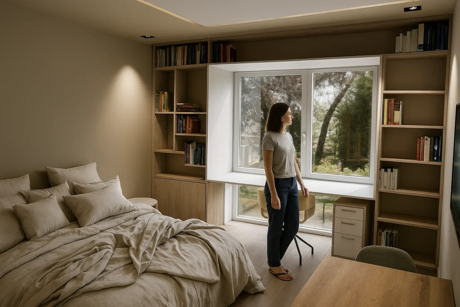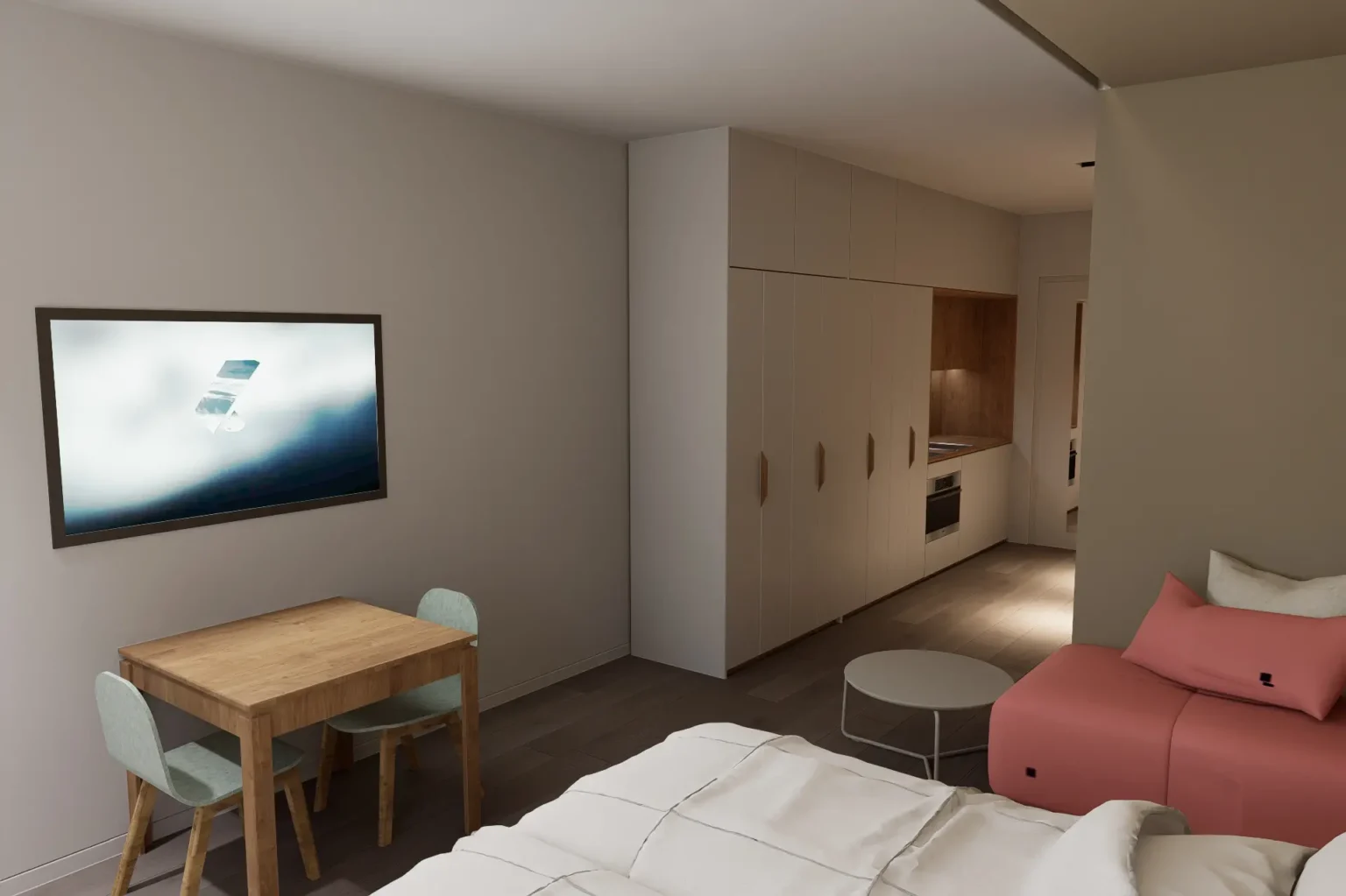 Τα Deluxe Studio είναι από τα μεγαλύτερα στούντιο του Campus Living by Oniros , με επιφάνειες 35τμ, σχεδιασμένα για φοιτητές που θέλουν άνεση, ευρύχωρους χώρους και μέγιστη λειτουργικότητα. Προσφέρουν φωτεινό, σύγχρονο και εργονομικό χώρο που συνδυάζει ύπνο, μελέτη και χαλάρωση. Κάθε δωμάτιο διαθέτει ημίδιπλο κρεβάτι, τραπέζι και πλήρως εξοπλισμένη κουζίνα με φούρνο, εστίες και ψυγείο. Υπάρχει επίσης γραφείο εργασίας με καρέκλα για μελέτη, ντουλάπα, smart tv, ενώ το μπάνιο διαθέτει ντουζιέρα και νιπτήρα. Όλα τα Deluxe studio περιλαμβάνουν κλιματισμό και ηχομόνωση.