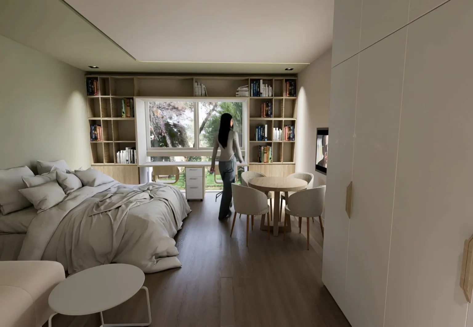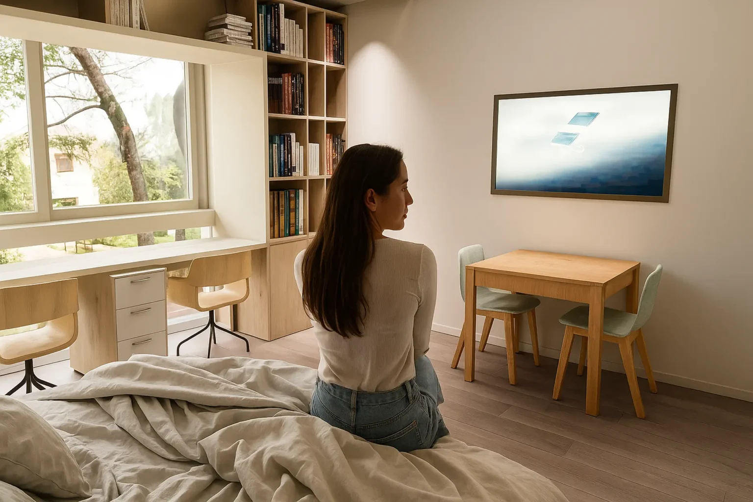 Οι Executive Suites είναι τα πιο ευρύχωρα δωμάτια του Campus Living by Oniros, με επιφάνεια 50 m², σχεδιασμένα για φοιτητές που επιθυμούν παραπάνω άνεση, λειτουργικότητα και άπλετο χώρο. Προσφέρουν φωτεινό, μοντέρνο και εργονομικό περιβάλλον που συνδυάζει διαμονή, μελέτη και χαλάρωση. Διαθέτουν άνετο κρεβάτι, καναπέ και πλήρως εξοπλισμένη κουζίνα με φούρνο, εστίες και ψυγείο. Ξεχωρίζουν για την 65’’ smart τηλεόραση και το PlayStation 5 που περιλαμβάνουν, προσφέροντας στιγμές διασκέδασης και χαλάρωσης μέσα στο δωμάτιο. Περιλαμβάνουν επίσης ευρύχωρο γραφείο με καρέκλα για μελέτη, άπλετο αποθηκευτικό χώρο ενώ το μπάνιο διαθέτει μεγάλη ντουζιέρα με γυάλινη πόρτα και νιπτήρα. Όλες οι executive suites περιλαμβάνουν κλιματισμό και ηχομόνωση.